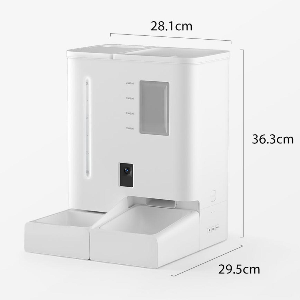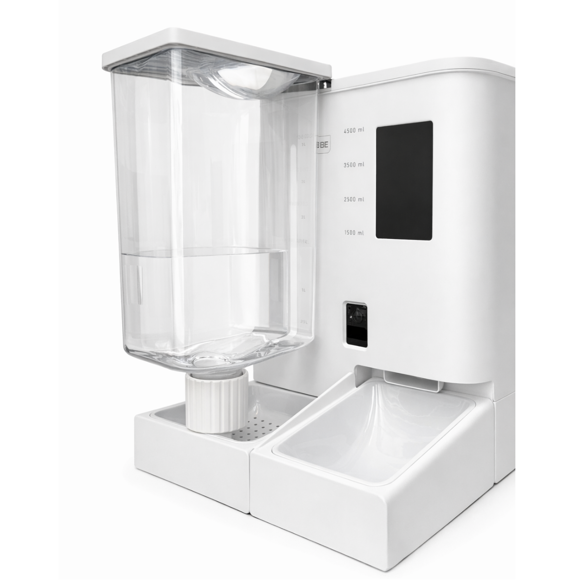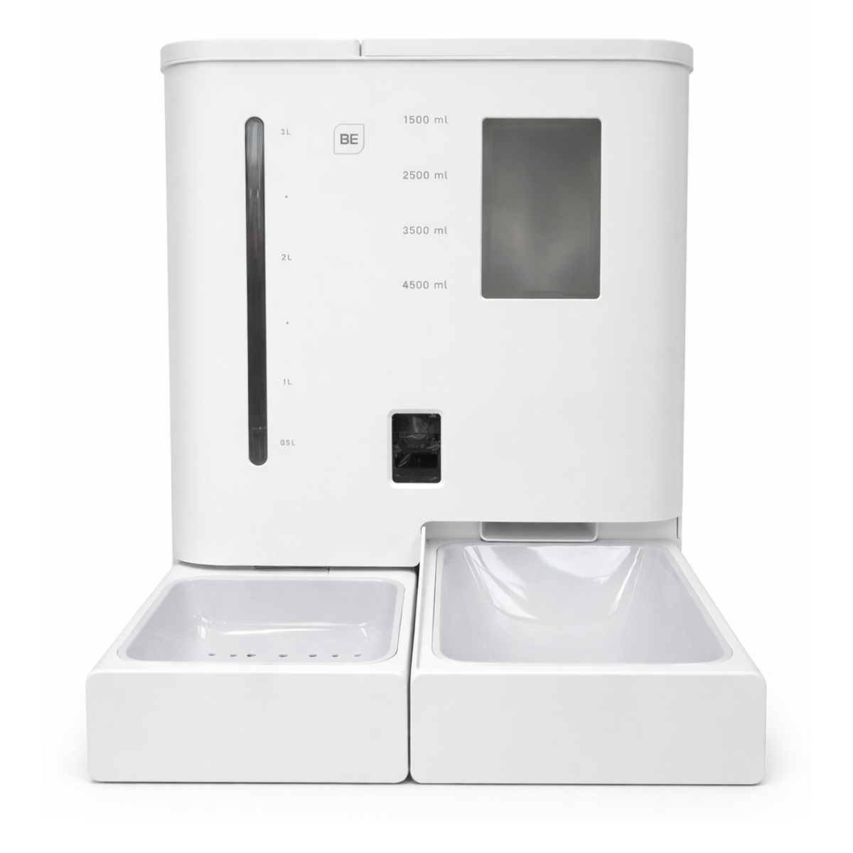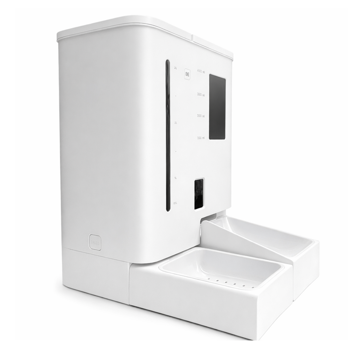 El Comedor y Bebedor Inteligente BE-CA01 es el sistema definitivo para garantizar la alimentación completa de tu mascota, aun cuando no estás en casa. Este modelo reúne dos funciones esenciales en un solo equipo: un depósito de 5 litros para comida seca y un tanque de 4 litros para agua, manteniendo hidratado y alimentado a tu peludito por varios días.